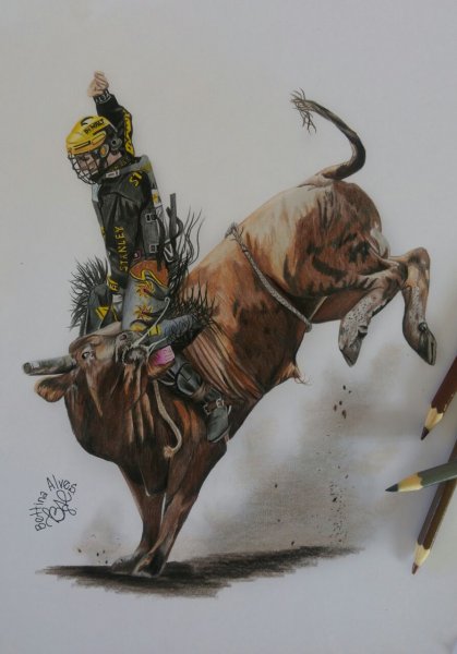“Comecei a desenhar aos três anos, sempre fui apaixonada por desenhos e também gosto muito de rodeio. Comecei a ver fotos dos competidores e imaginar como ficariam no papel, bastou o primeiro resultado para me apaixonar. Hoje em dia desenho de tudo, mas minha paixão mesmo é o mundo country e dos rodeios”, contou a jovem desenhista.