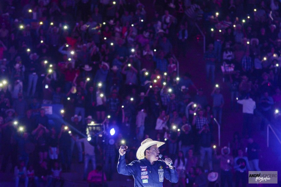 Na sequência, o locutor Cuiabano Lima, que completa 25 anos de Festa do Peão, agitou a galera e chamou os competidores. O publico presente ouviu a música “Ave Maria” e o hino nacional brasileiro.