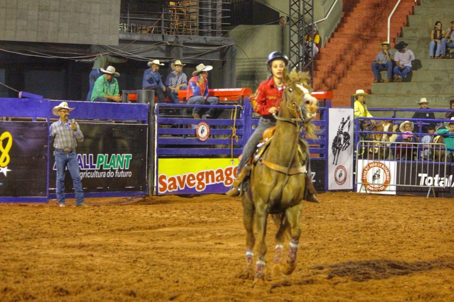 Na categoria feminina, a paulistana Cristina Elisa de Souza Goto Forja, que foi a quinta a se apresentar na arena, montando o animal Effort Shugar, concluiu o percurso em 17s980.
