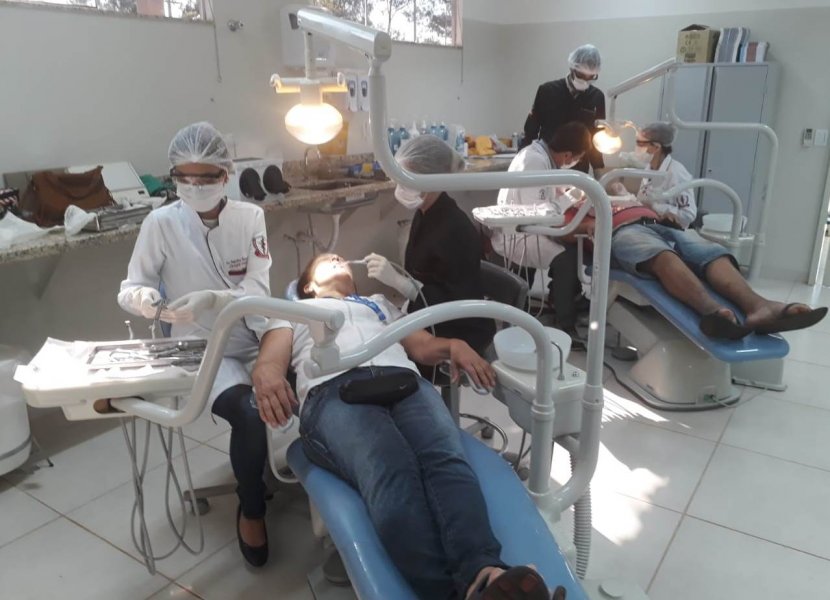 Onze alunos dos 3º e 4º anos de Odontologia participam desta ação, todos supervisionados por professores. "Cerca de 30 pacientes são atendidos diariamente, e para receber o atendimento odontológico não precisa fazer agendamentos prévios, é apenas vir", afirma o universitário de odontologia, João Victor Soares.