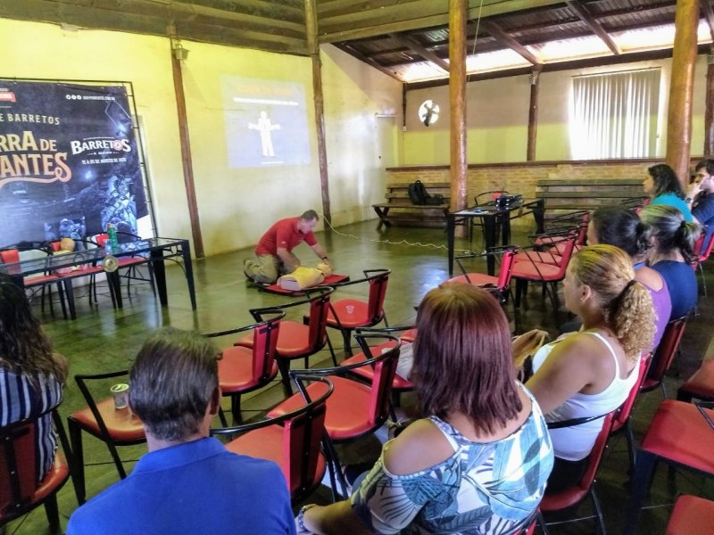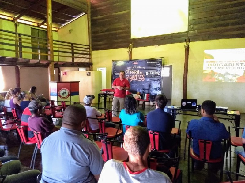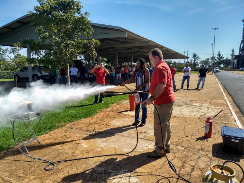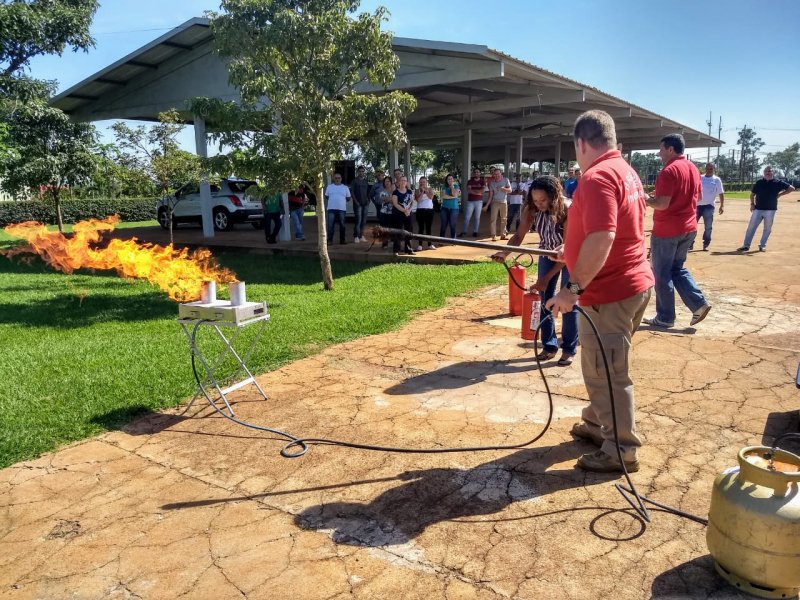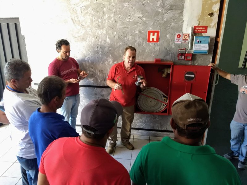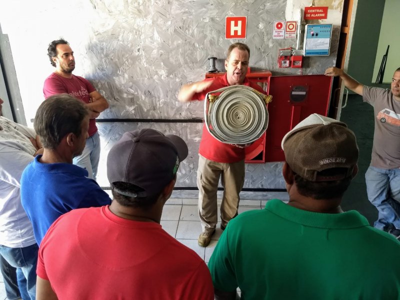 Na manhã de sábado, 27 de abril, o técnico em segurança do trabalho e bombeiro aposentado Daniel Fabrício aplicou treinamento de Brigada de Incêndio para um grupo de 27 colaboradores do Parque do Peão.
