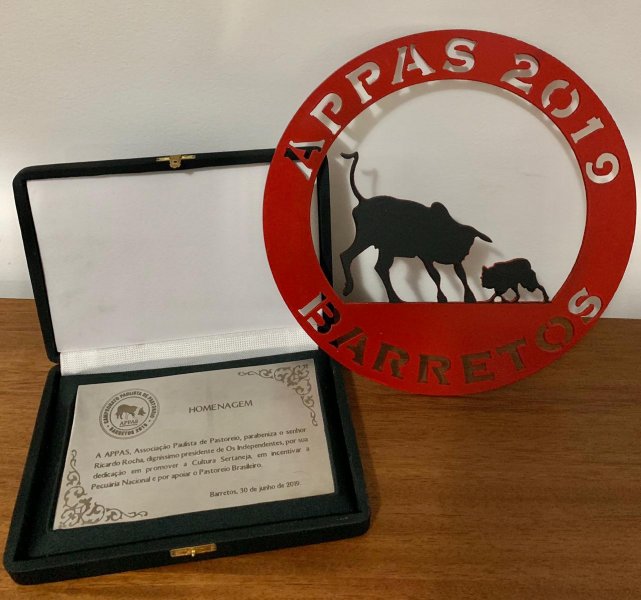 A Associação Os Independentes, através de seu presidente Ricardo Rocha, foi homenageada neste domingo, dia 30, pelo apoio concedido à realização da etapa do Campeonato Paulista de Pastoreio. Bodinho recebeu um troféu e uma placa da APPAS - Associação Paulista de Pastoreio, promotora do campeonato.