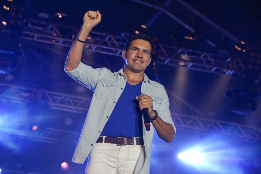 Na madrugada dessa segunda (25), o cantor Paulinho Reis comandou um show com cerca de duas horas de duração, no palco (Danilo Carvalho Fotógrafo)