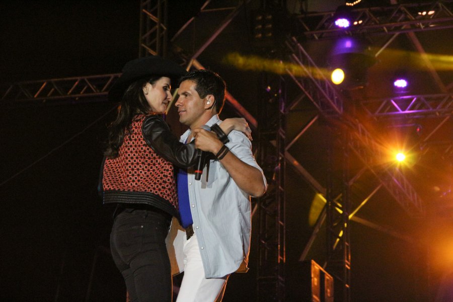 Nos bastidores a atriz global não poupou elogios ao cantor."Paulinho é um cantor de muito talento e tem um diferencial que me encanta.Torço muito pelo ele", declarou Lisandra Souto.