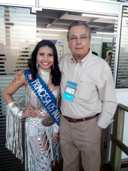 Bárbara Barcelos, princesa da Festa de 2013 e Fauler Oliveira, coordenador de turismo, no estande