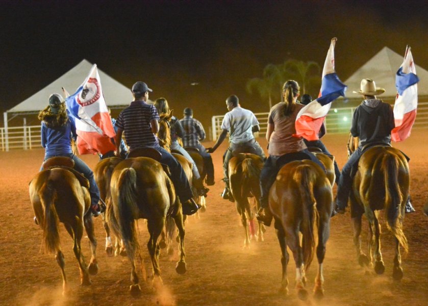 Um grupo formado por 30 cavaleiros e amazonas ensaia todos as noites para a abertura da programação do Estádio de Rodeio da 60ª Festa do Peão de Barretos.
