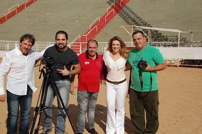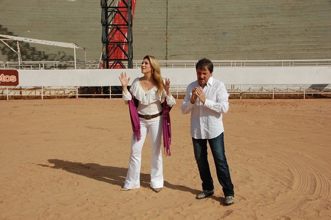 Dupla Wilson & Soraia durante gravação na arena de rodeios do Parque do Peão (Diego Rodrigues )